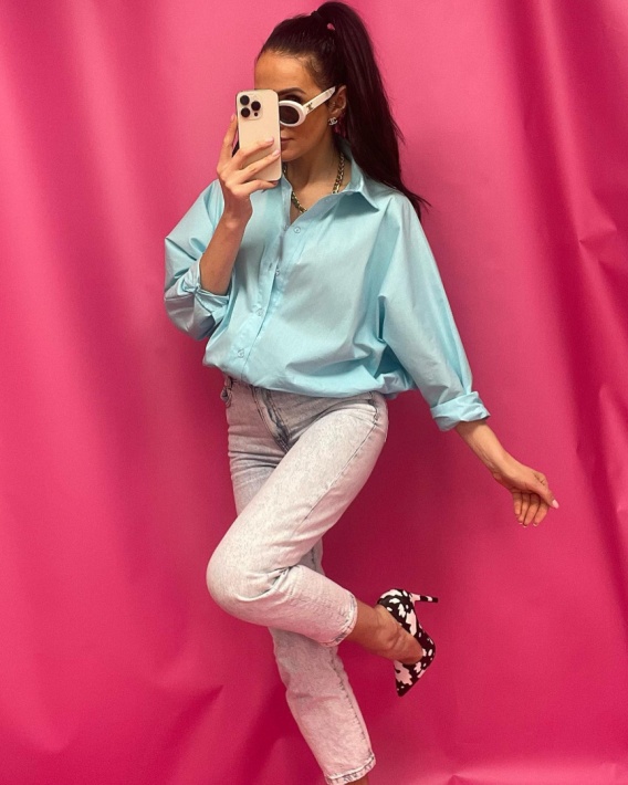 Bawełniana koszula oversize miętowa La Milla