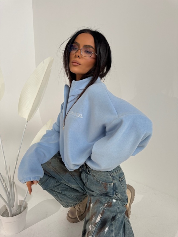 Oversize’owa bluza wykonana z grubszego, ciepłego polaru, który świetnie sprawdzi się w chłodniejsze dni. Materiał jest miękki, przyjemny w dotyku i dobrze trzyma ciepło. Model z krótkim zamkiem i wysokim kołnierzem, który możesz postawić lub odpiąć dla swobodniejszego looku. Z przodu i na plecach tonalny haft z logo LAMANUEL. Dół bluzy regulowany – można ją nosić luźno lub ściągnąć troczkiem. Dzięki uniwersalnemu, luźnemu krojowi pasuje również na sylwetki do XL.
