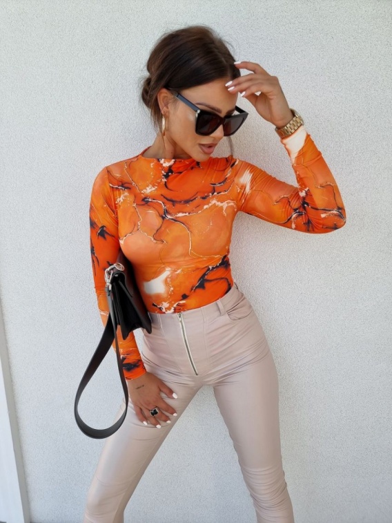Bluzka półgolf w marmurkowy print pomarańczowy - BY ME