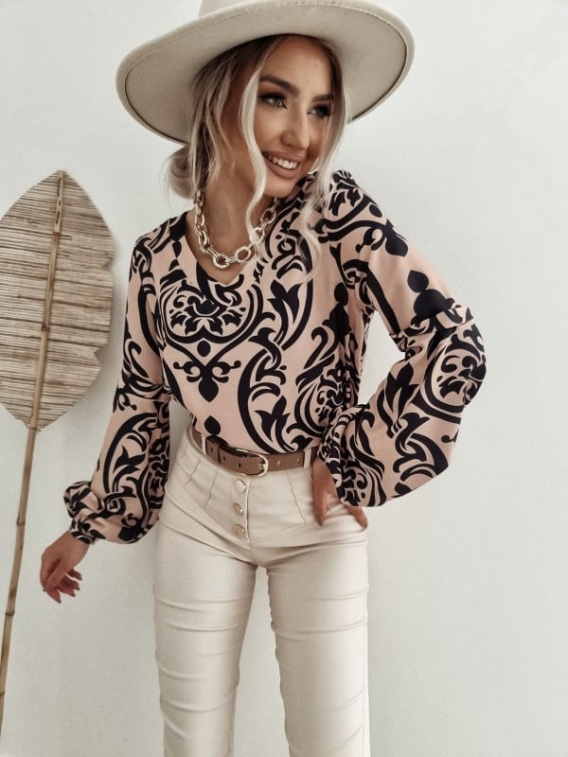 Bluzka we wzory z bufiastymi przedramionami INEZ ornament
