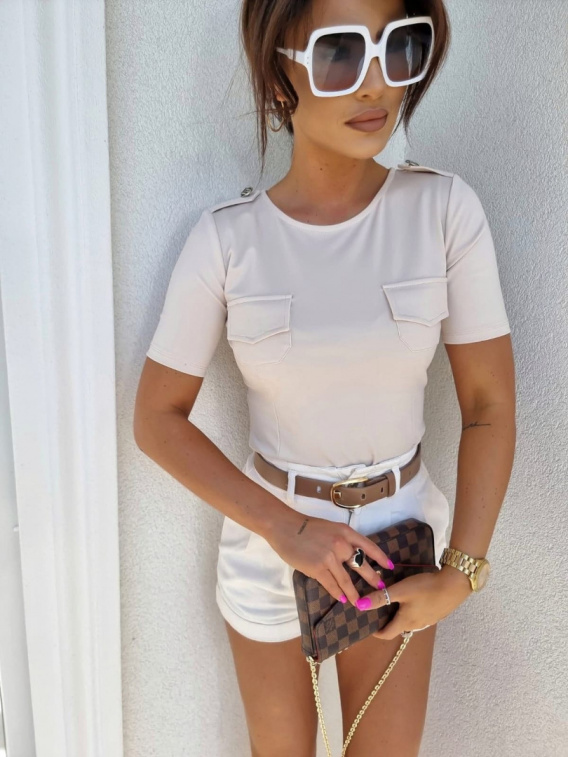 Bluzka z kieszonkami i pagonami SYLVIE jasny beż - BY ME