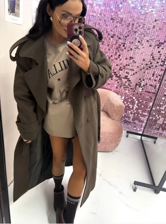 Oversize'owy krój tego płaszcza sprawia, że jest on nie tylko modne, ale również bardzo wygodne. Możesz go nosić zarówno na co dzień do pracy czy szkoły jak i na specjalne okazje - zawsze będziesz prezentować się szykownie i oryginalnie. Dodatkowym atutem są klapy oraz możliwość wiązania paska w talii - detale te dodają całości elegancji.