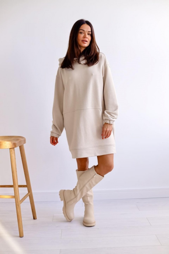 Długa bluza kangurka SHARON jasny beż - ME GUSTA