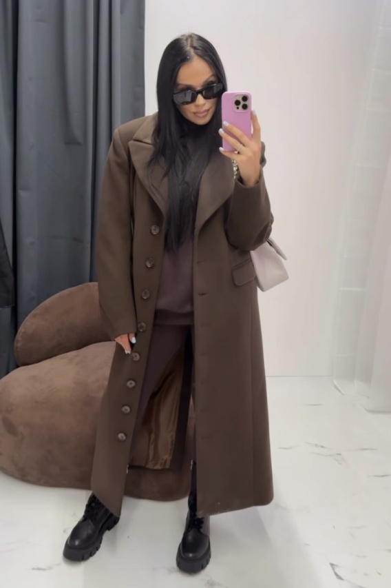 Długi płaszcz wełniany na guziki czekoladowy brąz La Milla