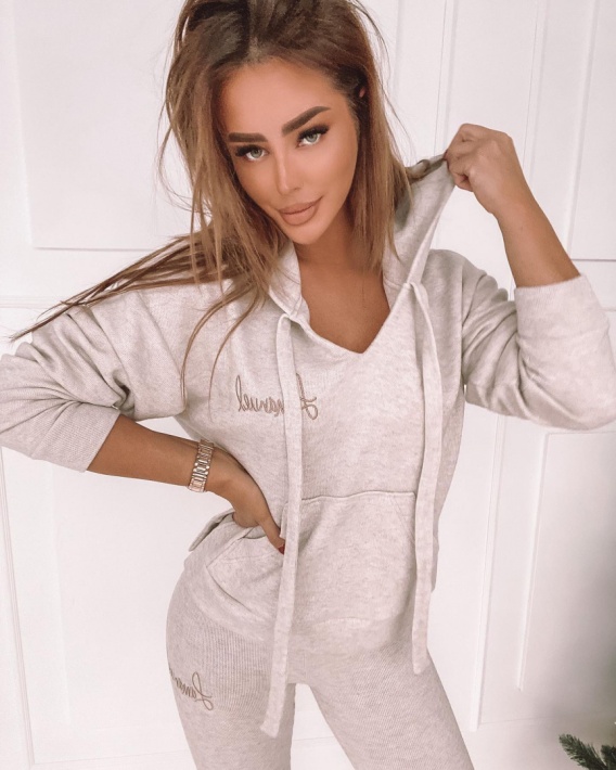 Dzianinowy dres w prążek TENDER beż - LA MANUEL