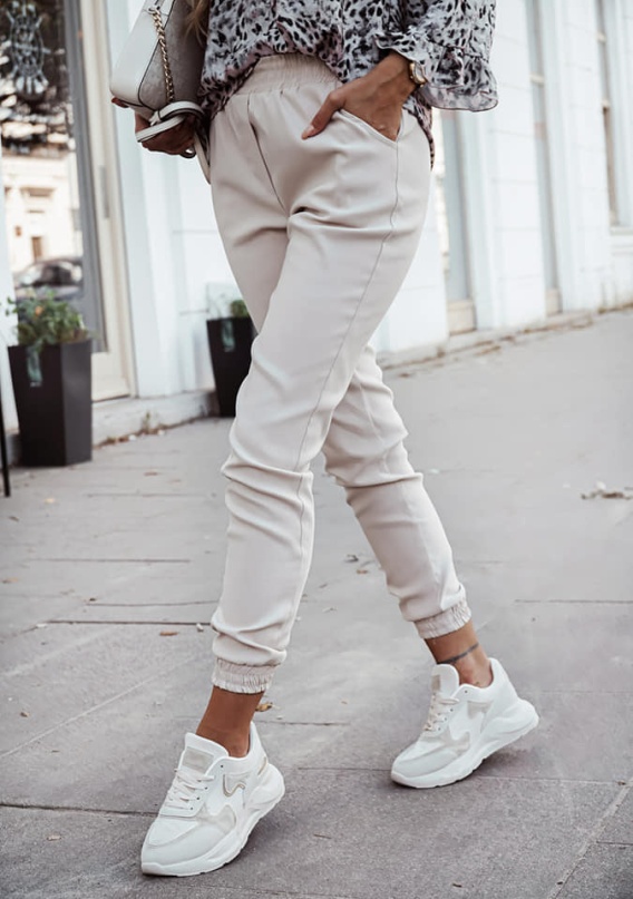 Ecru spodnie JOGGER z gumką w talii i przy kostkach
