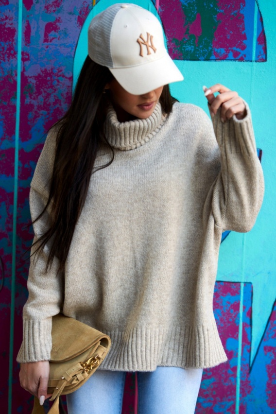 Klasyczny golf o równomiernym gładkim splocie beż - ME GUSTA