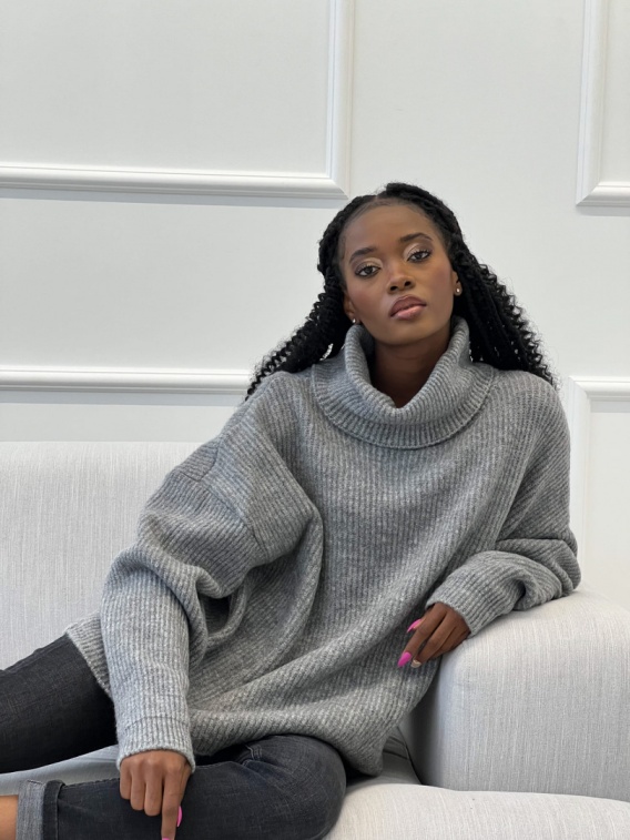 Klasyczny golf o równomiernym prążkowanym splocie ciemnoszary - ME GUSTA