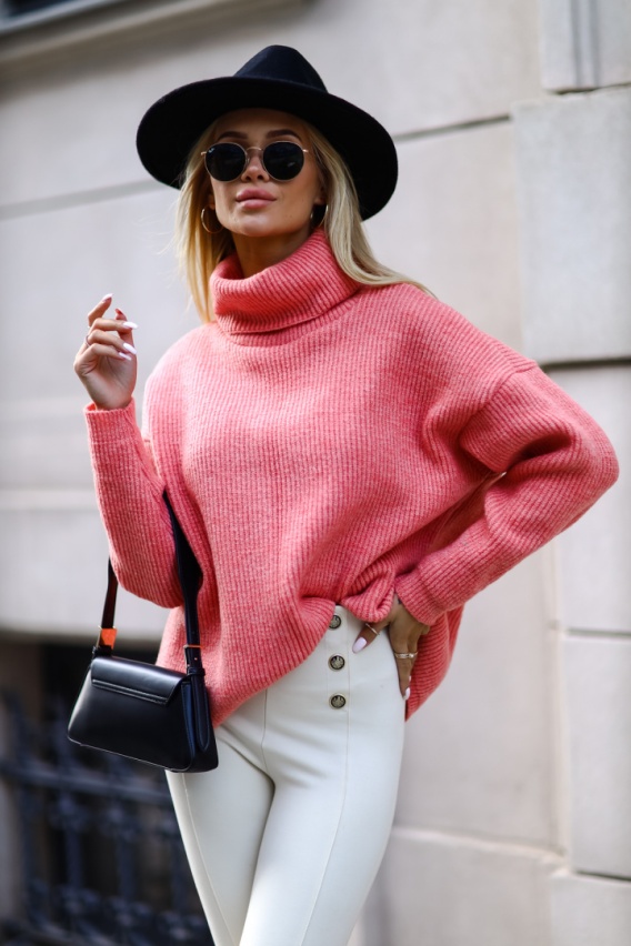 Klasyczny golf o równomiernym prążkowanym splocie koral - ME GUSTA