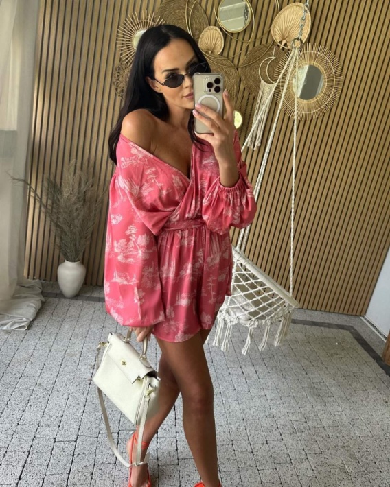 Piękny kombinezon z przewiewnej, delikatnej wiskozy o luźnym kroju oversize. Gumka oraz materiałowy pasek w talii pozwalają na idealne dopasowanie do sylwetki. Kopertowa góra idealnie podkreśla dekolt. Rękawy wykończone gumkami.