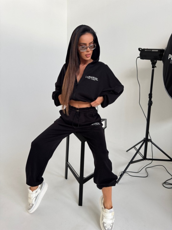 Komplet dresowy składający się z bluzy i spodni dresowych.
