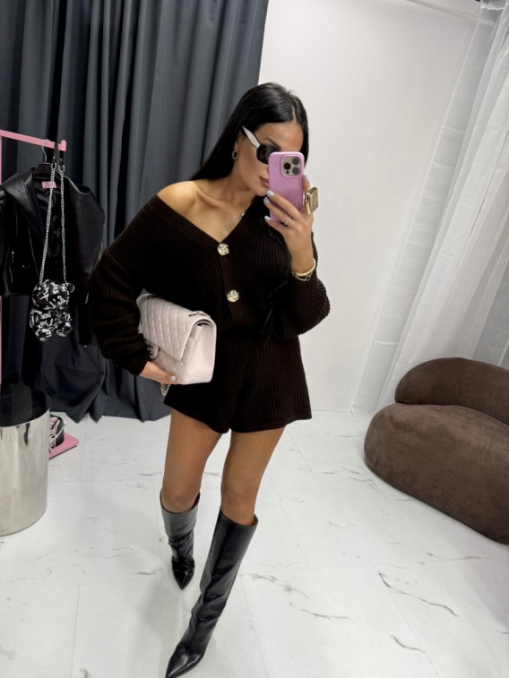 Komplet sweterkowy z ozdobnymi guzikami czarny La Milla