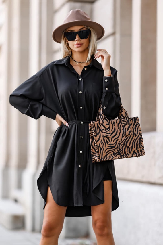 Koszulowa sukienka na guziki czarna - ME GUSTA