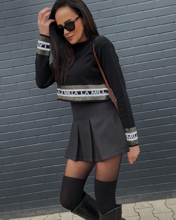 Krótki sweter LOGO IN GOLD czarny LA MILLA