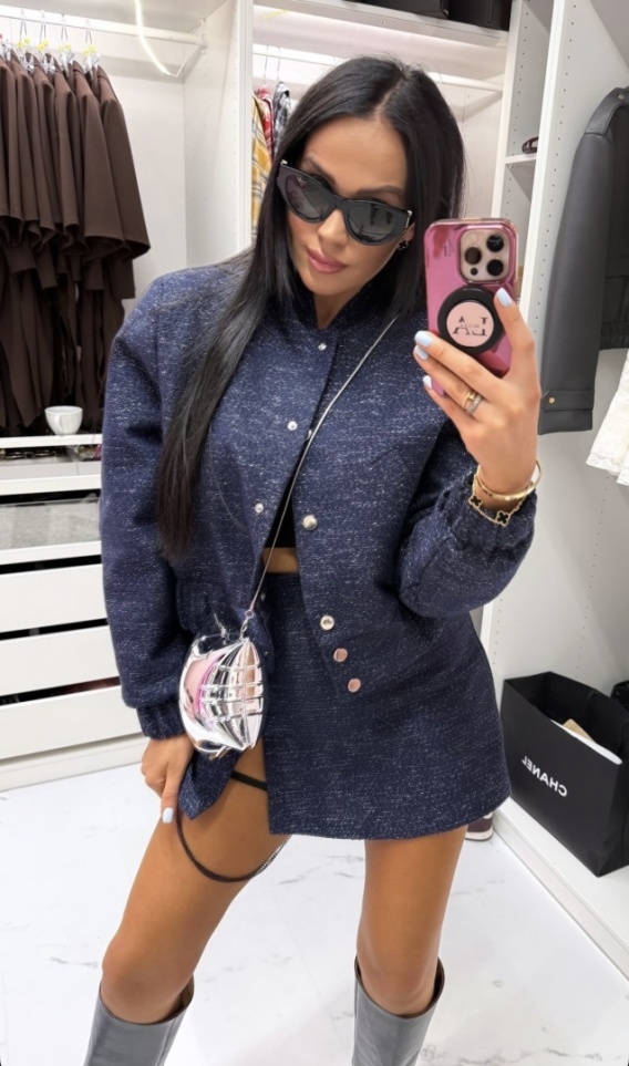 Kurteczka bomberka granatowa ze srebrną nitką La Milla