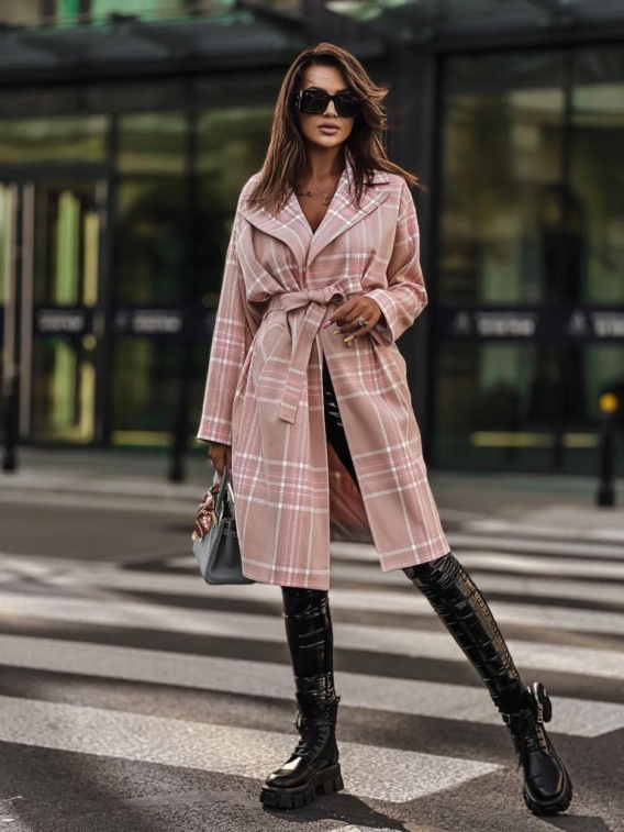 Płaszcz z domieszką wełny TOUS pudrowy - SEMPRE