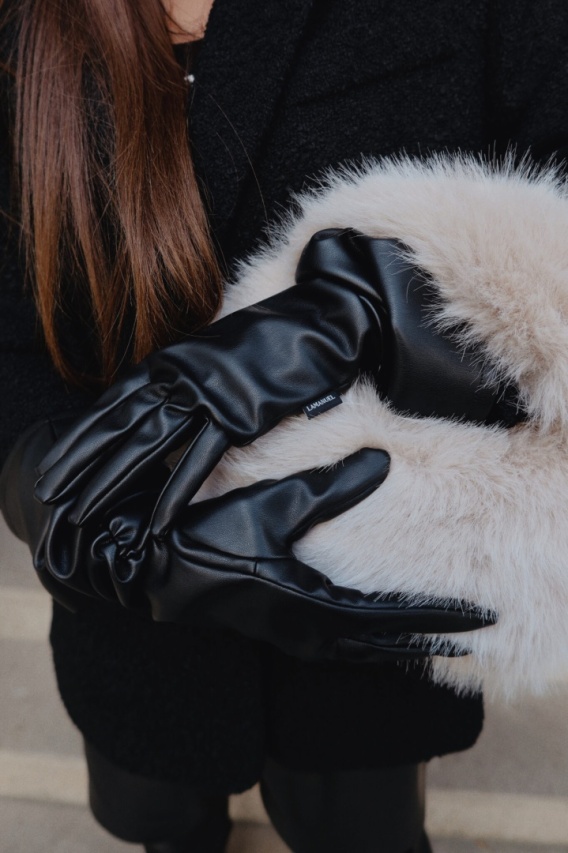 Rękawiczki z eko skóry, które robią cały look. Długie, miękko układające się na przedramieniu, z delikatnym marszczeniem, które dodaje im elegancji i stylowego luzu. Noś do płaszcza, marynarki lub swetra z szerokim rękawem – będą wyglądać spektakularnie nie tylko jako dodatek, ale jako pełnoprawny element stylizacji.