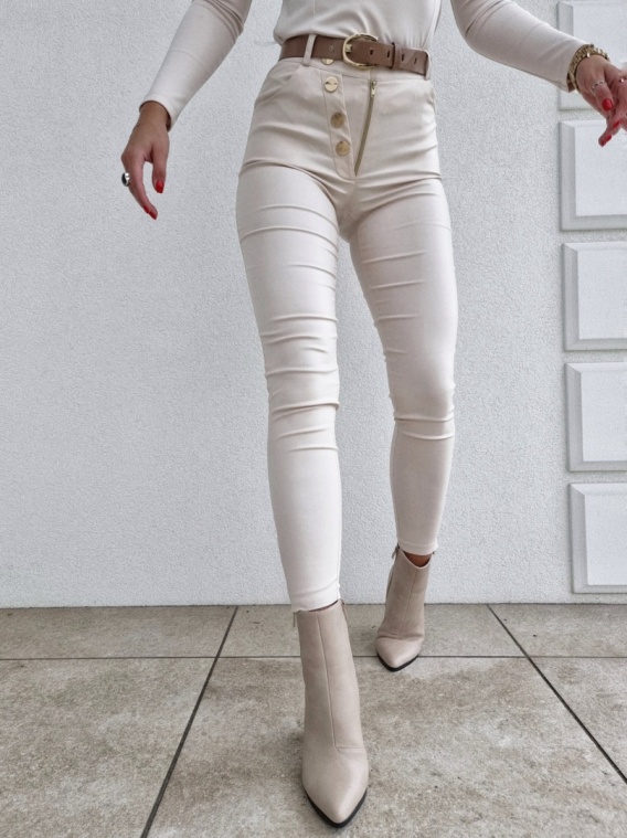 Spodnie woskowane ze złotymi guzikami SEVEN white smoke- BY ME