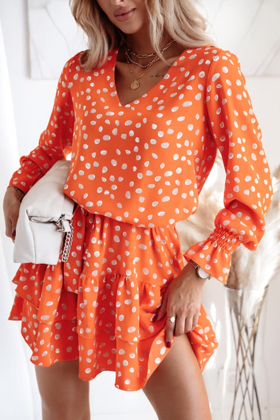 Sukienka w groszki ze ściągaczowym mankietem - XANA