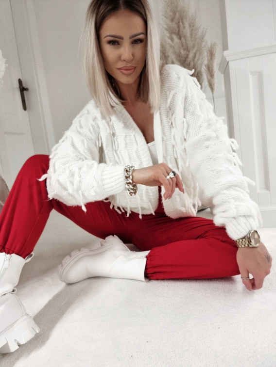 Sweterek narzutka z frędzlami śmietankowy - BY ME