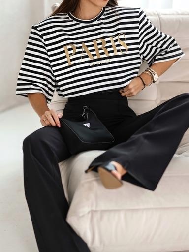 T-shirt PARIS paski ze złotym napisem La Milla