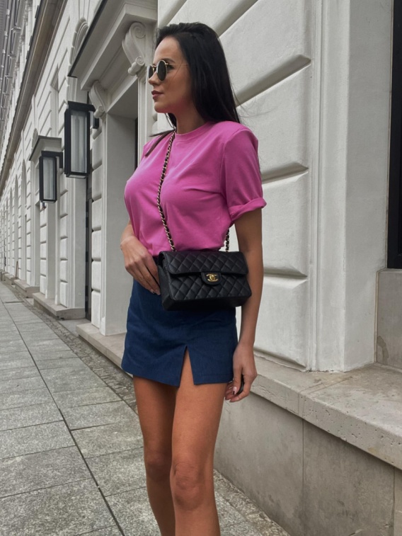 Koszulkę można nosić z luźno puszczonym rękawkiem lub efektownie podwiniętym.