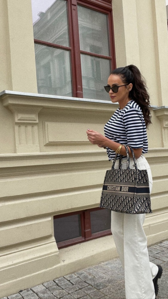 T-shirt z rękawem 1/2 i poduszkami granatowe paski LA MILLA