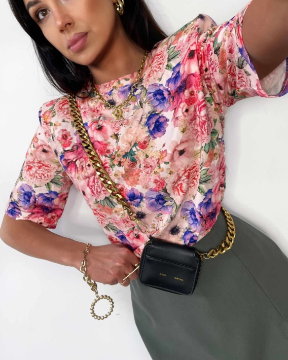 T-shirt z rękawem 1/2 i poduszkami kwiaty LA MILLA