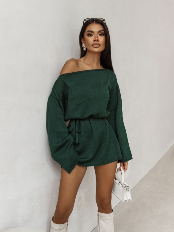 Kobieca sukienko tunika ze sweterkowej dzianiny o luźnym kroju, z szerokiumi rękawami i paskiem w talii.
