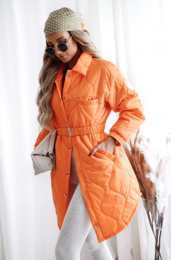 Wiosenny pikowany płaszcz pomarańczowy - XANA